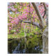 Dress up a wall with this photo print that features a photographic image of a pink cherry blossom tree in bloom alongside a pond. Customize your photo print size as desired.