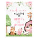 Pink Girls Floral Barn Farm Animaux Anniversaire Affiche de bienvenue Mention d'anniversaire à thème ferme avec une étable rose ainsi qu'un cochon, agneau, vache et cheval. Cette invitation à l'anniversaire d'une ferme rose présente également un bel arrangement floral rose. Ce panneau d'anniversaire de ferme est une façon mignonne de préparer le décor pour une fête d'anniversaire de fille sur le thème de la ferme.