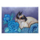 Peinture originale à l'aquarelle de Sandra Gale, avec un chat siamois en point de chocolat, entouré de fleurs bleues sur un arrière - plan violet pâle. Les fleurs sont des hydrangées bleues, des pavots bleus et un rose bleu. Grand design pour les amoureux de les chats et ceux qui aiment particulièrement la race siamoise. Parfait pour les peintures murales dans la chambre ou encadrées avec l'image correspondante. Correspondance aquarelle peinture d'un point bleu Siamese également disponible dans mon magasin EverIrisPrints.