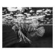 Un LionFish dans un aquarium, avec une réflexion sur l'eau de surface de la prise. L'image est en noir et blanc.