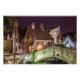 Peinture aquarelle du pont Bonifacius et maisons médiévales dans la vieille ville historique de Bruges, Belgique.