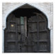 Photographie d'une vieille porte en bois carbonisé à une église ou un temple