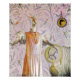 Un tableau numérique d'un Epais dans une robe rose en lime avec colliers en dentelle. Il y a une chaise avec une robe blanche et un casquette qui s'y repose. Un ancien portrait en silhouette d'une tête de canard dans un cadre rond de bois foncé, accroché au mur. Le mur est tapissé de papier peint rose avec des oiseaux tropicaux. Copyright ©2017 Kimberly J Tilley.
