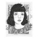 Portrait d'une fille avec des fleurs à l'arrière - plan. Dessin de trait noir et blanc.