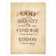 "Dieu m'accorde la SERENITÉ d'accepter les choses que je ne peux pas changer, le COURAGE de changer les choses que je peux, et la SAGESSE de connaître la différence." Paix, force, guérison et compréhension en ces temps de troubles, de désespoir ou d'incertitude. Connu sous le nom de "La prière de sérénité", associé à la récupération et 12 programmes en étapes. Utilisée par AA (Alcooliques anonymes). Prière écrite par Reinholt Niebuhr. Design : Vieux texte anglais sur parchemin naturel. Paula Bragg 2011 Texte : "Dieu m'accorde la SÉRENITÉ d'accepter les choses que je ne peux pas changer, le COURAGE de changer les choses que je peux, et la SAGESSE de connaître la différence."