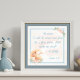 Accrochez ce psaume de prière à l'heure du coucher dans la chambre de votre enfant pour une nuit paisible. Le texte présente le verset biblique du Psaume 4:8 : "En paix, je me coucherai et je dormirai, car toi seul, Seigneur, fais-moi habiter en sécurité." L'impression photo est disponible avec le texte et le cadre en vert, bleu ou lavande violet. Le mignon petit renard dort sur une lune en croissant avec des fleurs pastel colorées de pêche.