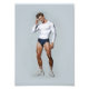 This striking digital painting captures a timeless athletic aesthetic, blending the nostalgic charm of mid-century illustration with a clean, modern artistic finish. The artwork features a muscular male figure in a classic white long-sleeve top and navy blue athletic briefs, complete with iconic striped crew socks and crisp white sneakers. The painterly textures and soft lighting evoke the sophisticated style of vintage fitness posters and pulp magazine art, making it a versatile piece for any collection. Whether you are looking to enhance your home gym decor or add a bold, masculine touch to your wardrobe, this design stands out with its blend of strength and retro flair. It is a perfect choice for those who appreciate high-quality figure studies and the enduring appeal of the classic sportsman look.