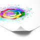 Grand rose fleuri avec pétales arc-en-ciel sur arrière - plan blanc, peint sur des éclaboussures de peinture colorée et lumineuse. 3d