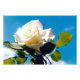 Rose blanche sous ciel bleu. Photo vibrante d'un beau rose fleuri fait un grand cadeau d'art mural floral. La beauté calme de la rose blanche reflète de nouveaux débuts, la pureté, la loyauté et l'innocence. Les roses blanches symbolisent le jeune amour que la mariée a pour son conjoint. Les roses blanches symbolisent également le fondement d'une relation, c'est pourquoi elles sont souvent vues le jour du mariage. La rose blanche est une fleur mariage traditionnelle. La rose blanche est une fleur appropriée pour célébrer un nouveau lien romantique et conjugal.