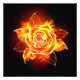 Rose en fleurs issue du feu et de la flamme sur fond noir.
