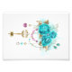 Clé d'or antique aux roses turquoise tendance décorée de feuilles d'or blanc et de perles rose et bleu. Couleur tendance. Rose turquoise. Blanc doré. Tiffany bleu.