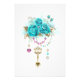 Clé d'or antique aux roses turquoise tendance décorée de feuilles d'or blanc et de perles rose et bleu. Couleur tendance. Rose turquoise. Blanc doré. Tiffany bleu.