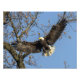 Un aigle chauve capturé lors de son approche d'atterrissage. Un majestueux aigle chauve d'une envergure de 2 à 7 pieds. Alors qu'il descend pour un atterrissage, ses ailes sont étirées, montrant l'étendue impressionnante de plumes. La tête blanche et les plumes de queue se détachent du corps brun foncé, créant un contraste saisissant.
