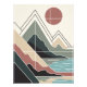 Geometric mountain landscape design combines clean lines and abstract shapes to create a modern, minimalist work of art. Inspired by the natural beauty of mountains, sunshine, and lakes, this artwork features a sophisticated earth color palette including warm terracotta, sage green, soft beige, and deep dark tones.