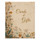 Guidez vos invités avec style en utilisant notre carte de mariage et signe cadeau élégant, avec un design bohème magnifique avec fleurs sauvages lunatiques, feuilles et verdure botanique. Le motif rustique aquarelle présente une palette chaleureuse de beige, d'orange brûlé, de terre cuite et de vert, qui s'inscrit parfaitement dans une esthétique vintage-chic. Idéal pour le printemps, l'été ou le mariage de automne, cet élégant panneau ajoute une touche de charme à votre table cadeau tout en vous mélangeant harmonieusement à votre fête à thème boho. La délicate bordure florale et l'élégante typographie confèrent à vos invités un décor raffiné.