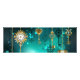 Or, clés antiques avec engrenages et cadrans accrochés sur chaînes dorées sur arrière - plan vert lumineux.