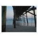 Il s'agit d'une photo prise alors que le soleil commençait à se coucher sur la belle île d'Oak, en Caroline du Nord. La photo a été prise sous la jetée, en regardant l'océan, et sous la jetée, en arrivant par le surf. Il s'agit d'une plage orientée au sud, donc le coucher du soleil était sur la droite, et commençait tout juste à tourner le ciel et des nuages lointains de tonnerre rose vers le bas près de l'horizon, qui se reflète un peu dans le sable, encore humide du surf. Photo de Brent Wiggins, utilisée ici avec sa permission.