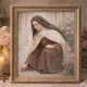 Catholic devotional art featuring Saint Thérèse of Lisieux in the cloister, gently bending to pick up a pin in the spirit of her Little Way. This 5x7 sacred print reflects the beauty of hidden sacrifice and small acts offered for love of Our Lord. Rendered in soft Marian ivory tones with warm antique accents, this heirloom-style artwork is ideal for prayer corners, confirmation gifts, Catholic weddings, or as a quiet daily reminder of humble holiness.