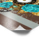 Impression Photo Steampunk Clock and Turquoise Roses on Striped