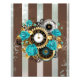 Impression Photo Steampunk Clock and Turquoise Roses on Striped