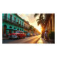 This captivating image transports you to the vibrant streets of Old Havana at sunset. Classic American cars from the 1950s, painted in bright reds and blues, cruise past colourful colonial buildings and swaying palm trees. The golden sunlight bathes the scene in warmth, casting long shadows and highlighting the lively yet relaxed atmosphere of the city. Locals and visitors alike enjoy the evening, strolling along the sidewalk or relaxing at outdoor cafés. The combination of historic architecture, vintage cars, and tropical scenery perfectly captures the timeless charm and unique spirit of Havana.