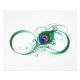 Le symbole de l'infinity with a bright, green, artistic peacock feather on a white background. Tattoo style.