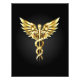 Symboles Caduceus polygonaux or sur arrière - plan noir isolé. Basse poly symbole de la médecine.