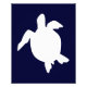 Silhouette bleu foncé et blanc forme simple d'une tortue de mer nageant.