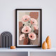 Cette oeuvre florale incarne une sérénité raffinée, mêlant nature et géométrie à travers des fleurs de corail mou, des tiges encrées et des formes de blocs pastel propres. Les recouvrements beiges rectangulaires créent un sens de l'ordre architectural, qui contraste magnifiquement avec la croissance sauvage organique des fleurs. Le ton général est délicat mais confiant, parfait pour une esthétique féminine moderne ou un intérieur d'inspiration scandinave. Son débit vertical et sa palette douce en font un outil idéal pour les tirages de mode, les décors à la maison ou la papeterie.