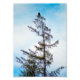 Photo d'un aigle à tête blanche américain perché au sommet d'un grand pin. Un ciel bleu avec des nuages brumeux sont dans l'arrière - plan. Des traces de soleil et de neige se trouvent sur l'arbre et ses branches. Copyright Image 2017 Kimberly J Tilley.