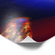 Dessin d'une planète avec une comète qui s'étire et un train qui s'y dirige.