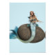 rendu numérique 3D d'une belle sirène triste assise sur une pierre sur un arrière - plan bleu