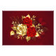 La composition de deux roses rouges artistiquement peintes et d'un rose doré, décoré d'or, feuilles de bijoux sur arrière - plan texturé.