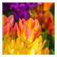 Tulipes Enchanting 16. Tulipes colorées sur un parterre de fleurs. Pratiquement toutes les couleurs de l'arc-en-ciel présentes. Scène florale lumineuse et positive. Photographie macro.