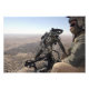 Un chef d'équipage cherche des activités suspectes lorsqu'il utilise une mitrailleuse à bord d'un hélicoptère muni d'un dispositif aérien.