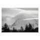 Photo en noir et blanc du Mont Rainier. Il y a des arbres au premier plan. Il y a des nuages lenticulaires qui forment et remplissent le ciel environnant au sommet du volcan endormi. Copyright ©2023 Kimberly J Tilley. zazzle.com/store/developingnature