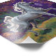 Unicorn Glade Imaginaire Art de Traci Van Wagoner imprimé d'une peinture originale d'une belle licorne blanche debout dans une glace magique ensoleillée contre une forêt violette, verte et rouge en arrière - plan. Notre joli art imaginaire fait des cadeaux parfaits pour tous ceux qui aiment les licornes, les chevaux, et tout ce qui est magique.