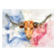 Impression Photo Vache Longhorn avec carte du Texas et drapeau aqua