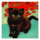 Photo Impression avec un chat noir et des fleurs rouges dans le style Van Gogh! Ce joli chaton pose adorablement avec des fleurs rouges. Un cadeau fabuleux pour les amoureux de les chats et les collectionneurs d'art hollandais !