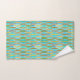 Serviette sertie dans un imprimé ruban abstrait moderne du milieu du siècle dans des tons cool d'aqua doux, turquoise et bleu mer combiné avec tan et beige