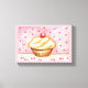 Cette impression sur toile présente un cupcake mignon avec des cerises. L'image provient d'une peinture originale.
