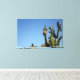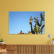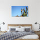 Impression sur toile tendue de plante de cactus vert et jaune en fleurs sur fond de ciel bleu à ajouter à votre collection de décor pour la maison / le bureau / les affaires. Une idée de cadeau / présent cool pour tous ceux qui aiment la nature, les impressions florales, l'art mural, les objets originaux et uniques de conception personnalisée.
