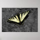 Une photo d'un papillon de l'Est du Tigre Swallowtail au repos sur une plage de sable humide.