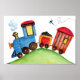 Jolie aquarelle et dessin au crayon de couleur d'un train qui avance... parfait pour la chambre d'enfant ou la nurserie !