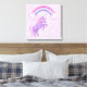 Un imprimé en toile d'imaginaire avec licorne violette, arc-en-ciel pastel et nuages roses avec bordure violette et poussière d'étoile. Joli ajout à n'importe quelle chambre de princesse.