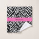 Serviettes personnalisées en zèbre noir et blanc. Le design comprend un motif zèbre noir et blanc et une bande rose chaude au milieu avec votre nom personnalisé.
