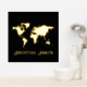 Cette véritable affiche en feuille d'or présente une carte du monde et un modèle texte qui lit l'aventure attend. Vous pouvez modifier le texte et modifier l'image comme vous le souhaitez. Idéal pour quelqu'un qui aime voyager et qui a une nature aventureuse.