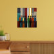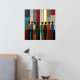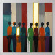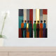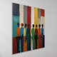 Une affiche avec de la vraie feuille d'or et une peinture abstraite de silhouettes humaines dans une variété de couleurs. Une belle impression en rouge, bleu, orange et vert.