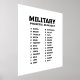 Maîtrisez une communication claire et tactique avec ce graphique militaire en alphabet phonétique, qui présente le code complet de l'OTAN d'Alpha à Zulu. Conçu avec des lignes épurées et une typographie de style militaire, ce graphique est à la fois fonctionnel et visuellement frappant. Que vous soyez en formation, un opérateur radio HAM, un pilote ou simplement un passionné d'histoire militaire, cette affiche apporte un style prêt à l'emploi dans votre espace. Idéal pour les salles de classe, les écoles de pilotage, les salles de commandement et les bureaux d'anciens combattants.
