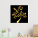 Impression de papier peint chic avec un arbre à fleurs doré, contre un arrière - plan noir. Belle impression pour tous les amoureux de la nature.
